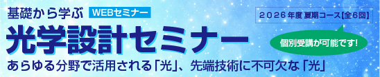 当セミナーは、独学あるいは学生時代に勉強した光学の知識ではビジネス対応が難しいと感じておられる若手から中堅クラスまでの方を対象としており、光学の基礎から各種光学系までを分かりやすく解き明かします。